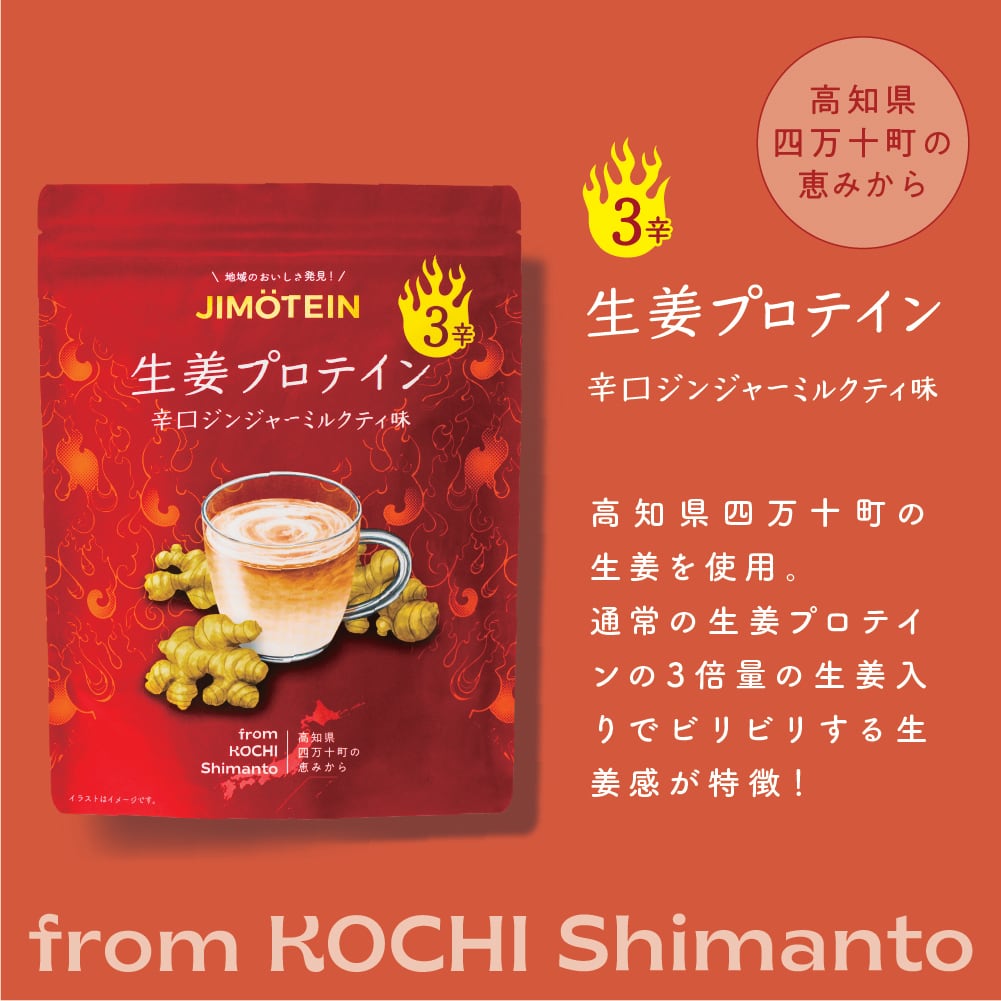 生姜の生産量が日本一の高知県四万十町の生姜を惜しみなく使用したプロテイン。